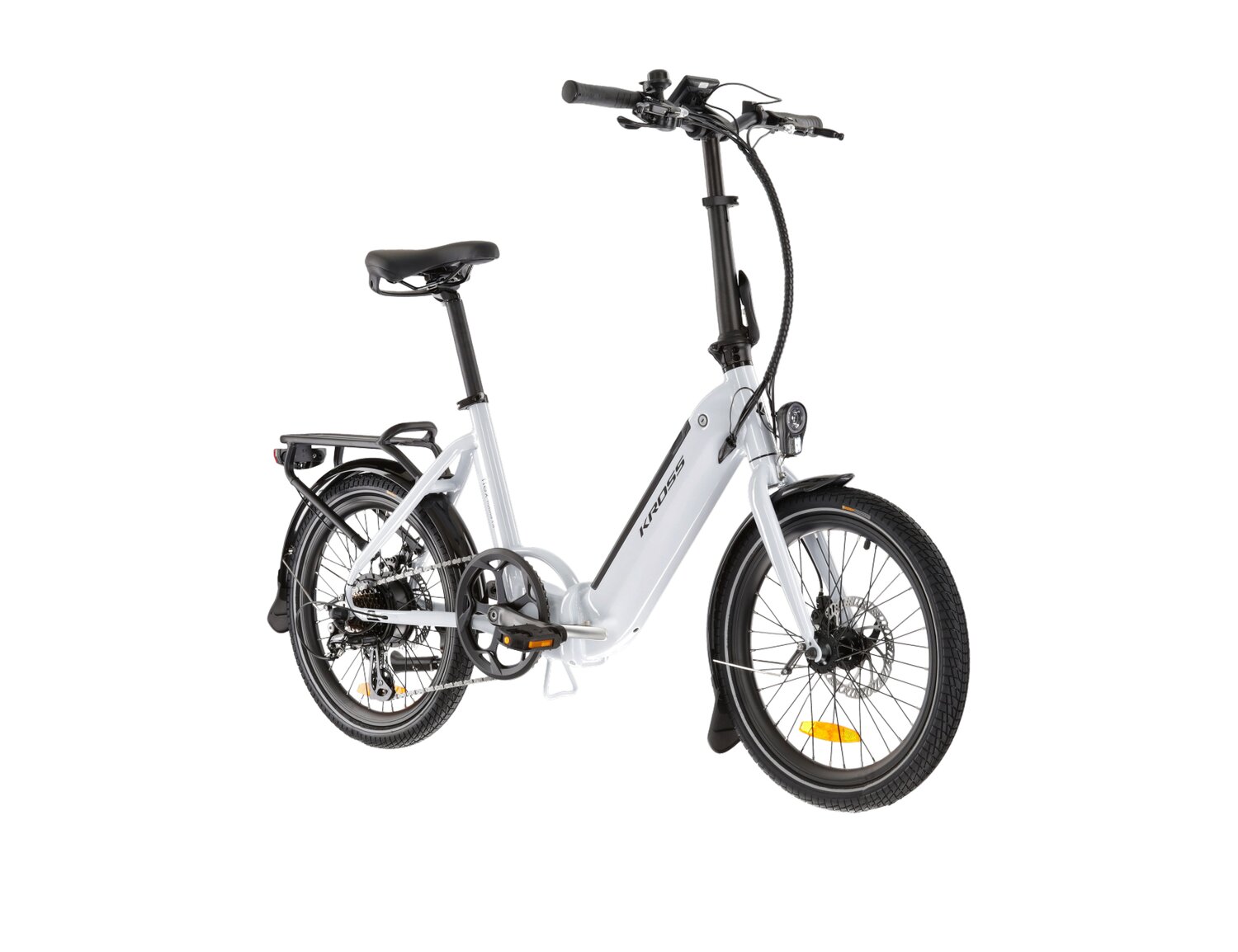 KROSS Flex Hybrid 1.0 posiada 20-calowe koła wyposażone w opony, które zapewniają doskonałą stabilność i kontrolę, nawet na mokrej nawierzchni. Mechaniczne hamulce tarczowe zapewniają dużą siłę hamowania, co przekłada się na większe bezpieczeństwo podczas jazdy. Co więcej, hamulce tarczowe mają dłuższą żywotność niż tradycyjne hamulce, co czyni je bardziej ekonomicznym wyborem.