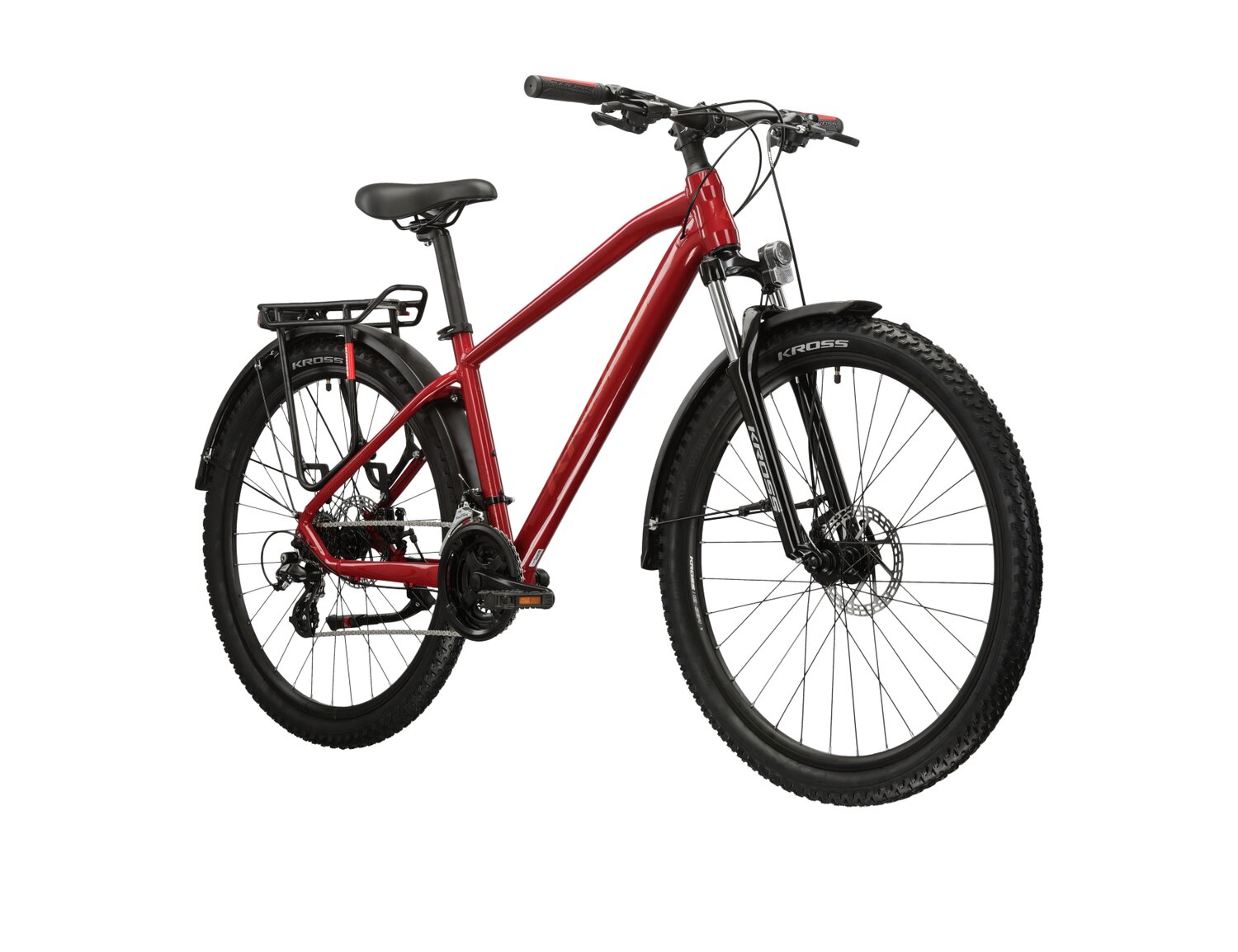 Wersja EQ roweru Kross Hexagon 2.0 EQ została wzbogacona o praktyczne akcesoria, które zwiększają komfort codziennego użytkowania. Zintegrowane oświetlenie umożliwia jazdę po zmroku, a bagażnik ułatwia transport niezbędnych przedmiotów. Oprócz tego, system pełnych błotników chroni przed błotem, co jest niezwykle ważne podczas jazdy w deszczowych warunkach. Całość uzupełnia podpórka, eliminująca problem szukania wygodnego miejsca do oparcia roweru.