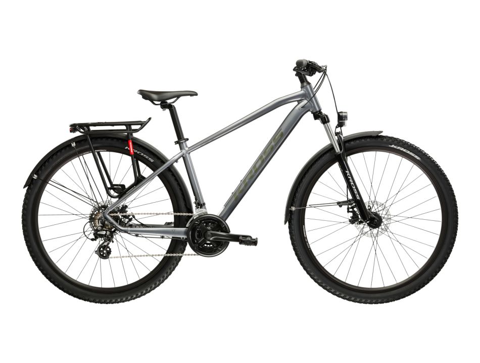 Model EQ to wersja wyposażona w wiele praktycznych akcesoriów, które zwiększają komfort codziennego użytkowania. Zintegrowane oświetlenie ułatwia jazdę w warunkach nocnych, a bagażnik umożliwia przewożenie niezbędnego ekwipunku lub montaż sakw. Dodatkowo, system błotników świetnie chroni przed błotem, co sprawia, że rower idealnie sprawdzi się w każdą pogodę.
