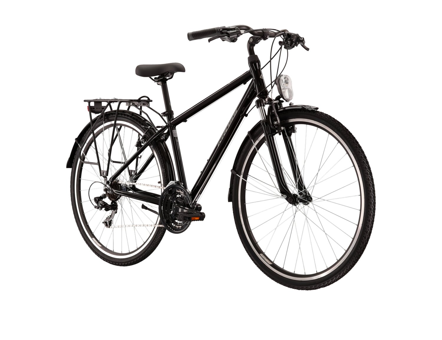 Rower KROSS Trans 1.0 posiada zintegrowane oświetlenie, co ułatwia jazdę po zmroku. Dzięki temu możesz cieszyć się spokojnymi i bezpiecznymi wieczornymi przejażdżkami, bez obaw o widoczność na drodze.