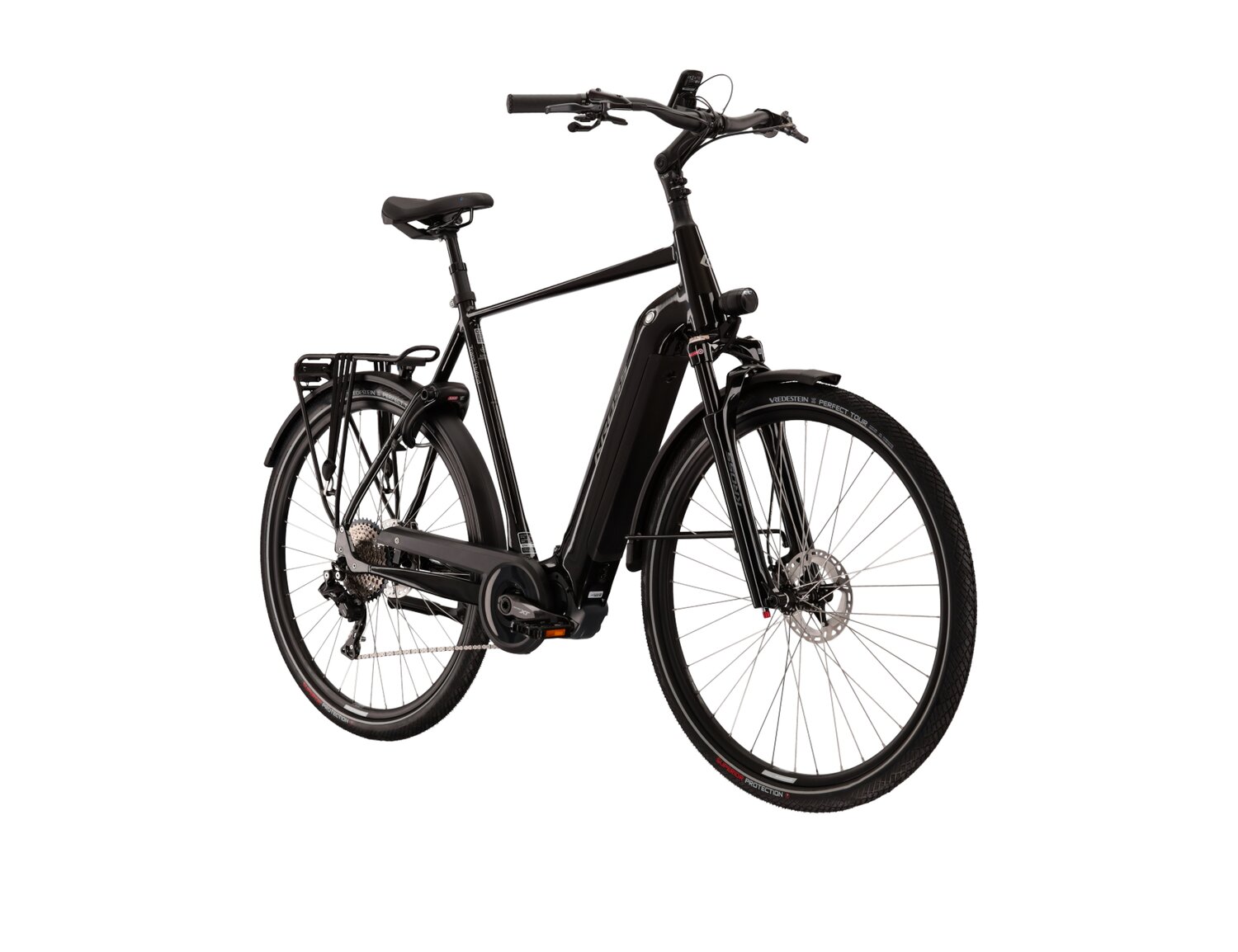 Rower wyposażony jest w powietrzny amortyzator SR Suntour Mobie 25, który dostosowuje się do wagi użytkownika, zapewniając doskonałe właściwości jezdne. Opony Vredestein o szerokości 47 mm oferują niskie opory toczenia oraz doskonałą przyczepność, co jest niezwykle istotne w trakcie jazdy po różnych nawierzchniach.